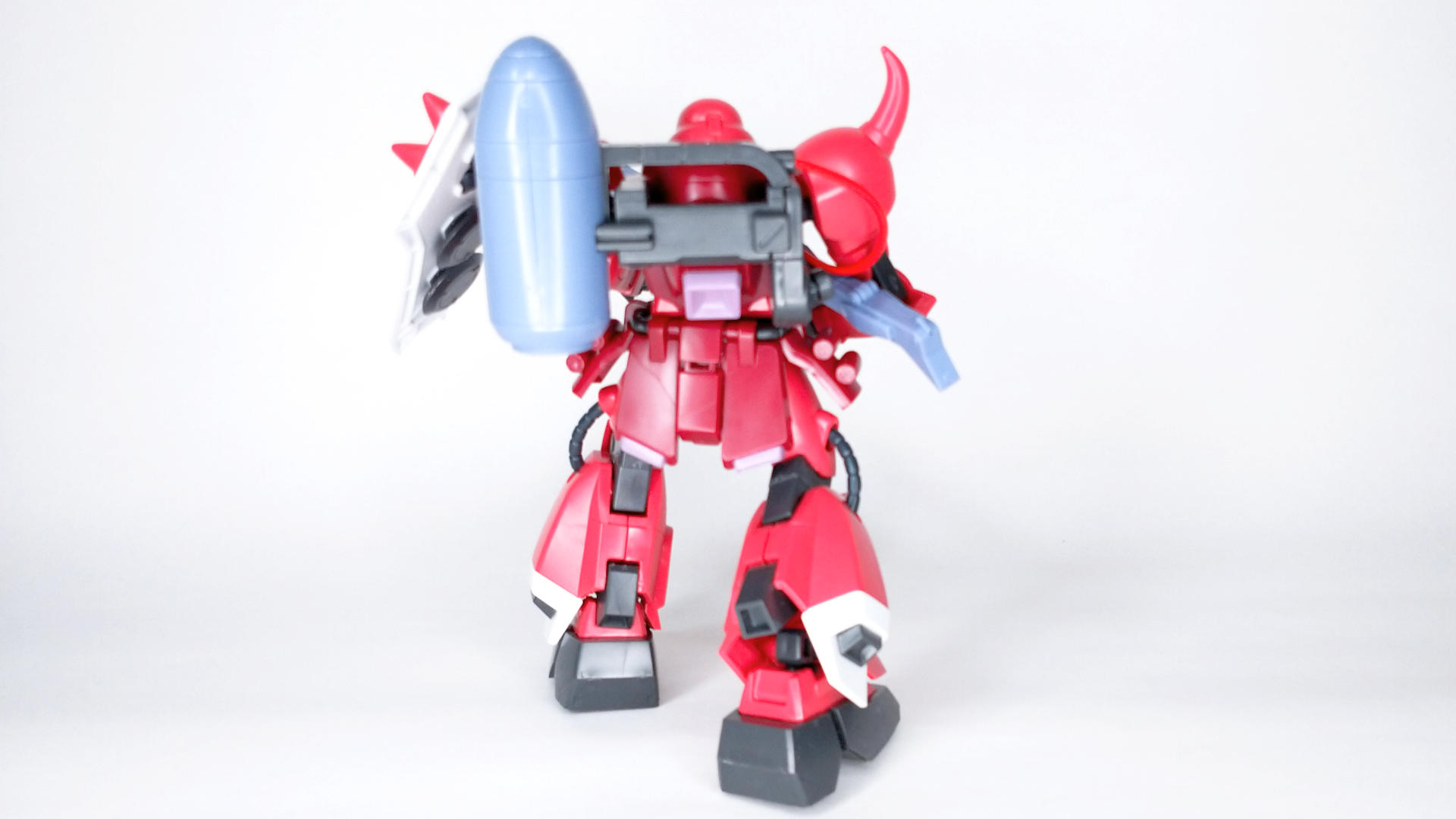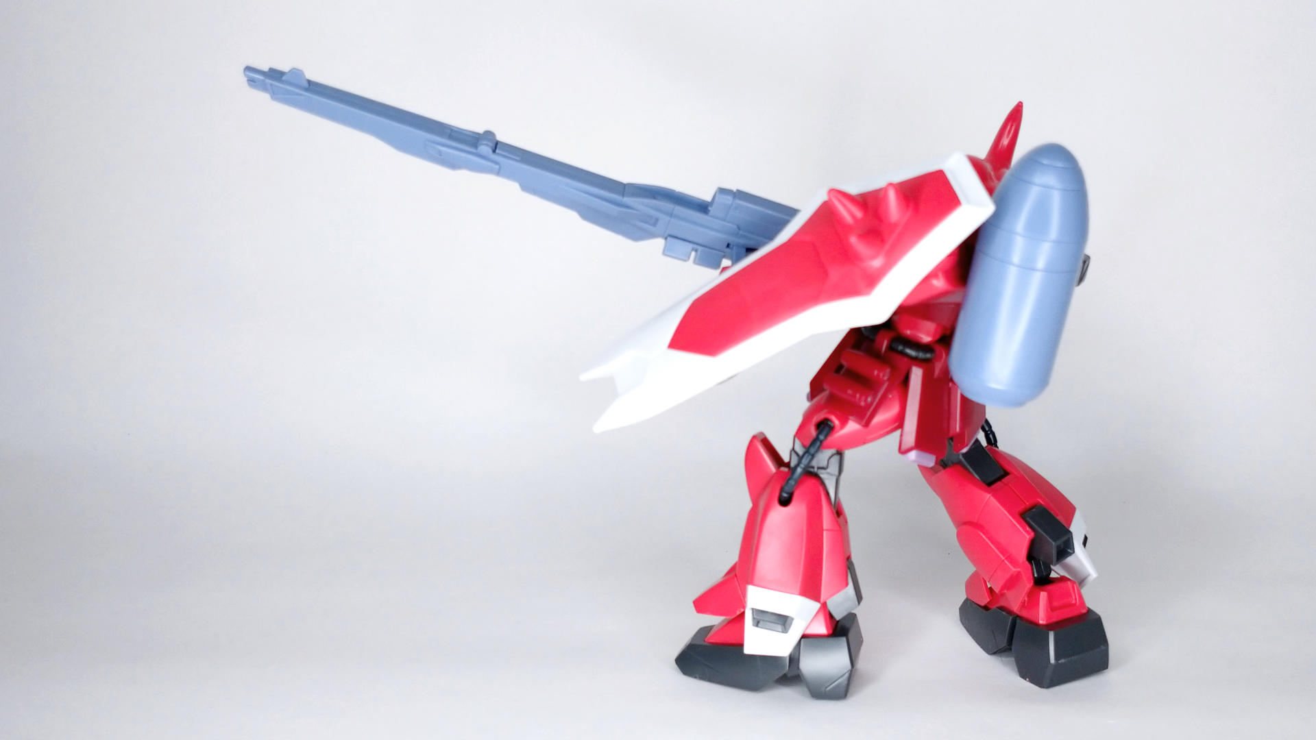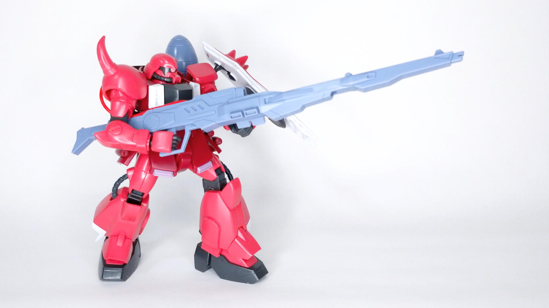 かっこいい造形のザクウォーリアーに高エネルギー高射程ビーム砲を換装させて、さらにルナマリアカラーのピンクよりのレッド仕様にしたことで、さらに格好良さが増した機体。