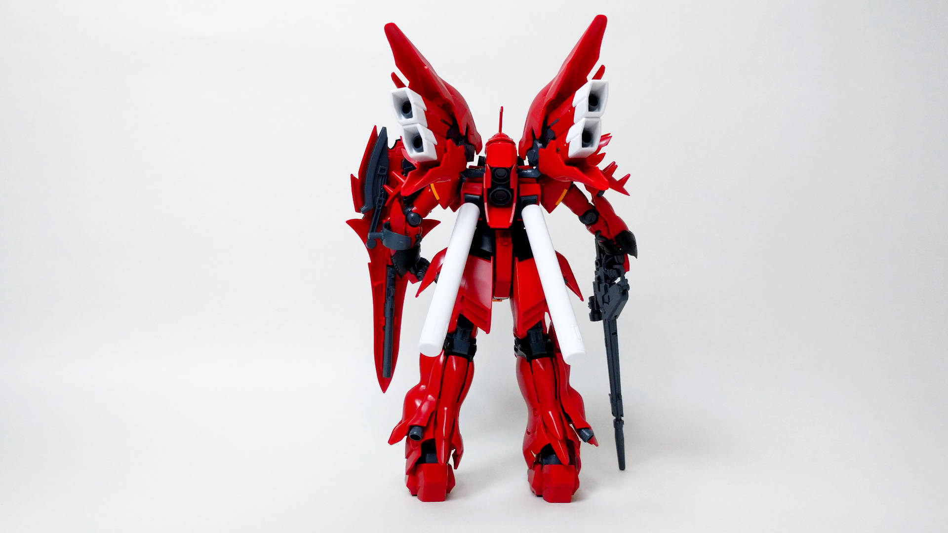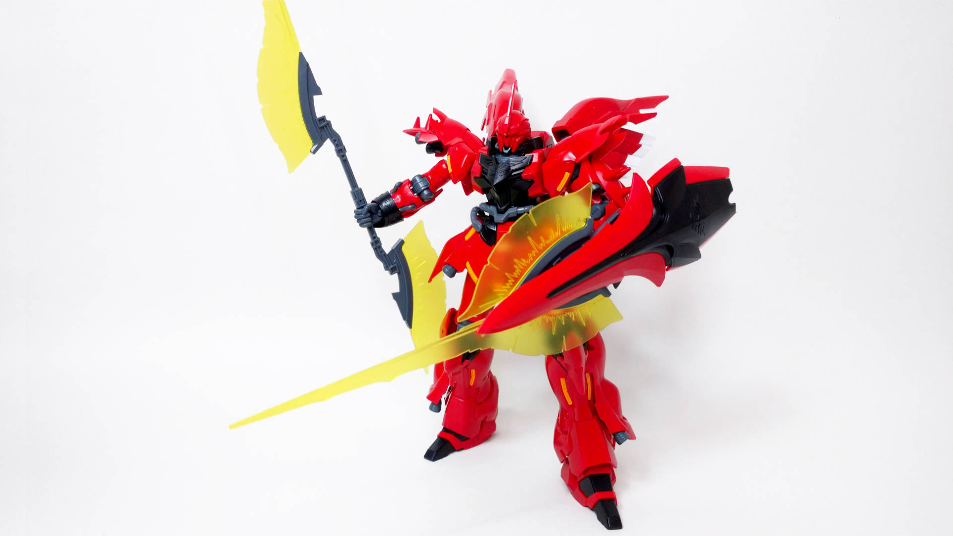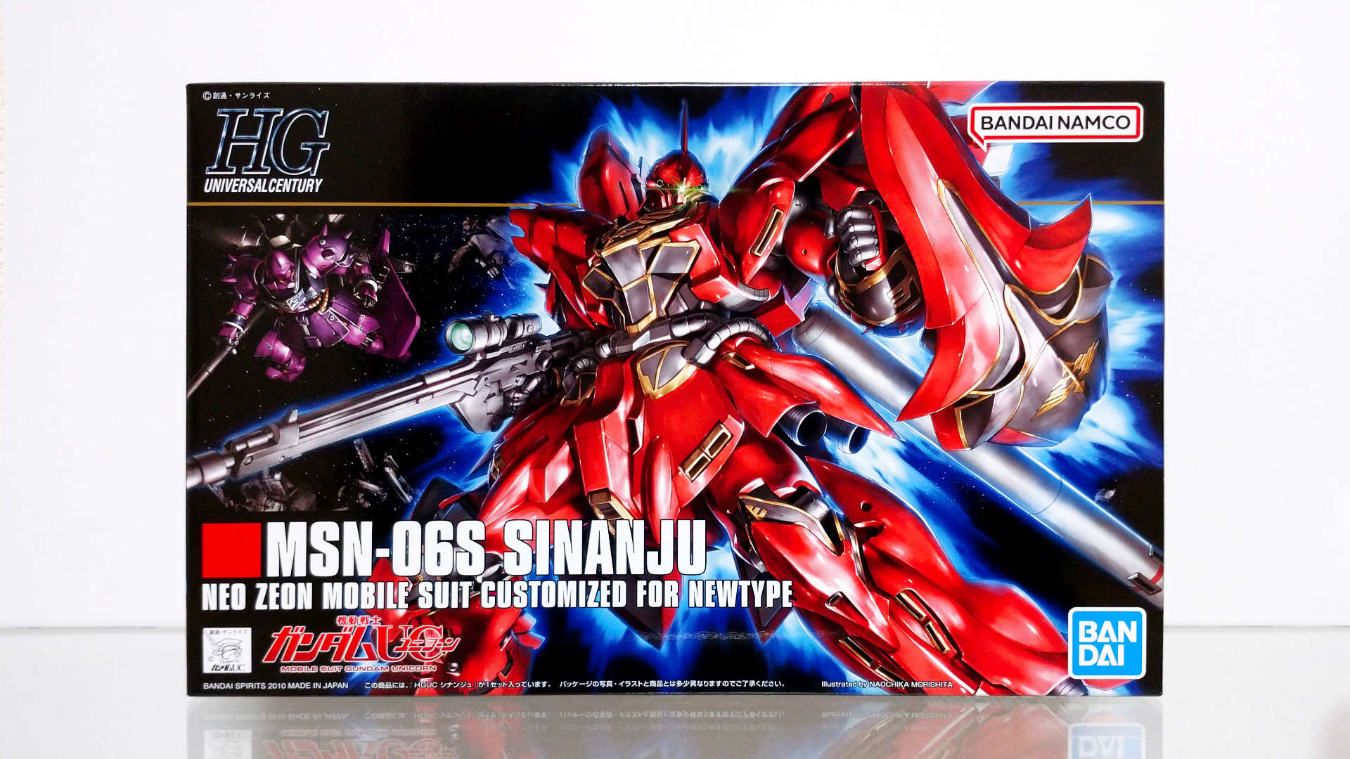 U.C.0094にアナハイム・エレクトロニクス社から『袖付き』によって強奪された試作モビルスーツ。ムーバブルフレームの一部にサイコフレームが採用され、この機体のデータを基にユニコーンガンダムが完成された。『袖付き』のフル・フロンタルの専用機であり、その圧倒的な戦闘力と真紅の姿は、見る者にかつての"赤い彗星"を連想させる。